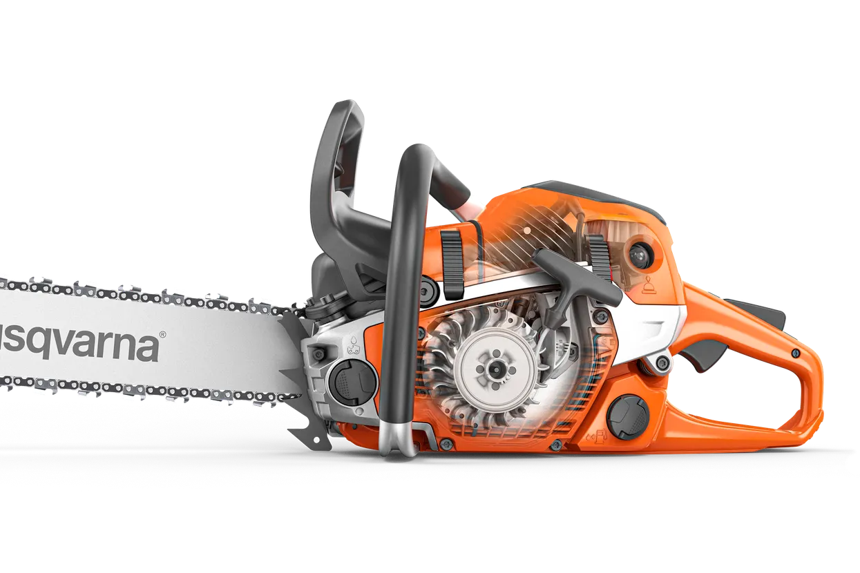 Husqvarna 445S a Husqvarna 450S jsou robustní a univerzální řetězové pily s funkcí Smart Start® pro majitele nemovitostí zkonstruované tak, aby zvládly všechny práce na pozemku, od lesnických prací, jako je kácení, řezání a odvětvování, po přípravu palivového dřeva.